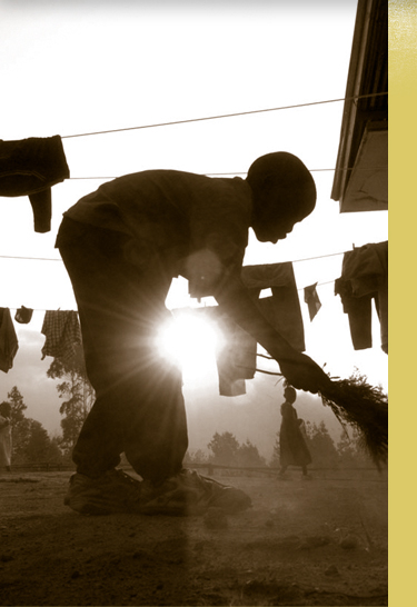 Working together, the partnership began by asking the children to describe the greatest problems facing them in their daily lives. Drawing pictures to depict their thoughts, the children identified the loss of parents and other family members to HIV/AIDS. They envisioned a center where orphaned children could be sheltered and fed. In 2005 Godfrey’s Children Center was born from the children’s dreams. In partnership with the Rockefeller Foundation, we convened a team of evaluation experts who designed and implemented a rigorous research program to measure the impact of the Children’s Center on the village’s orphaned and vulnerable children’s well-being. We have piloted a research