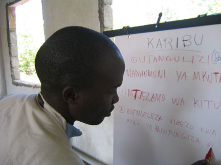 Tanzanian project manager Furaha Nsemwa facilitated a meeting to establish guidelines for determining which children most needed center services.